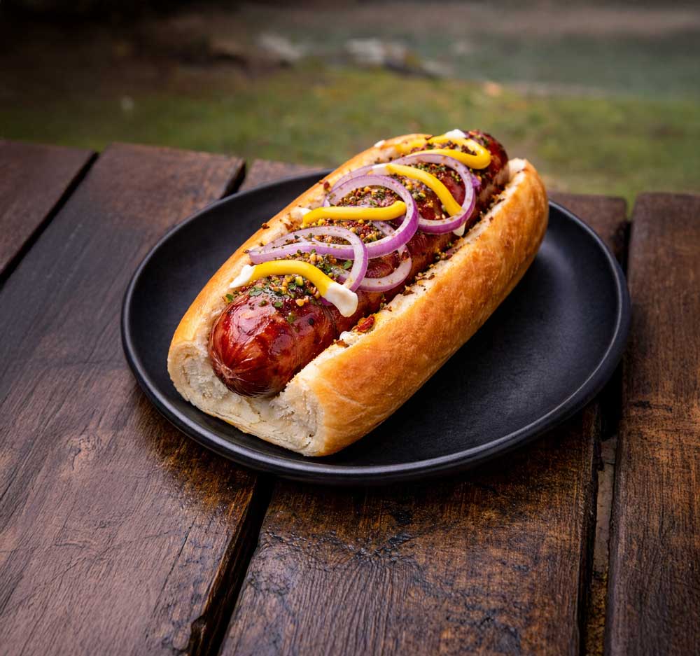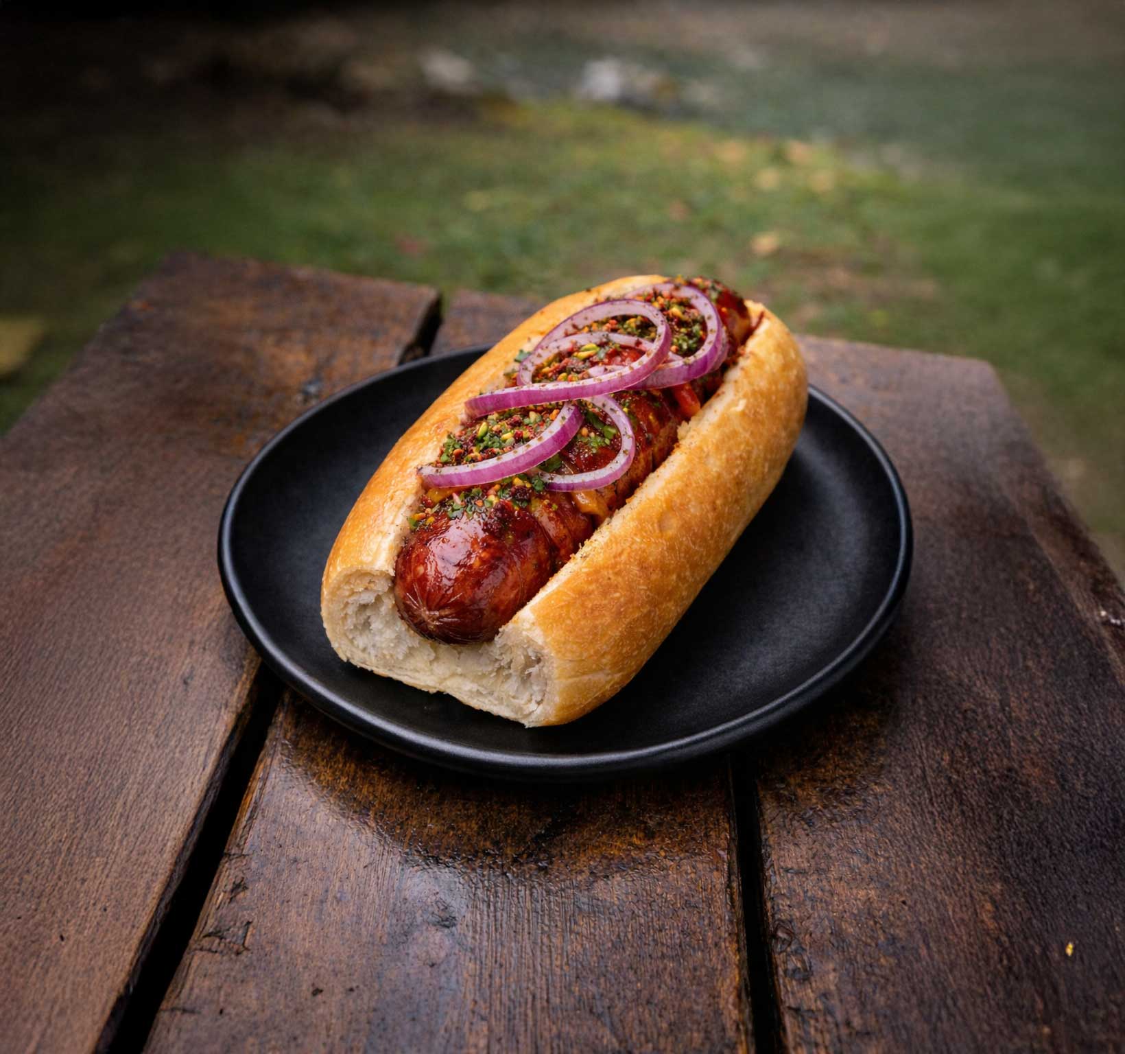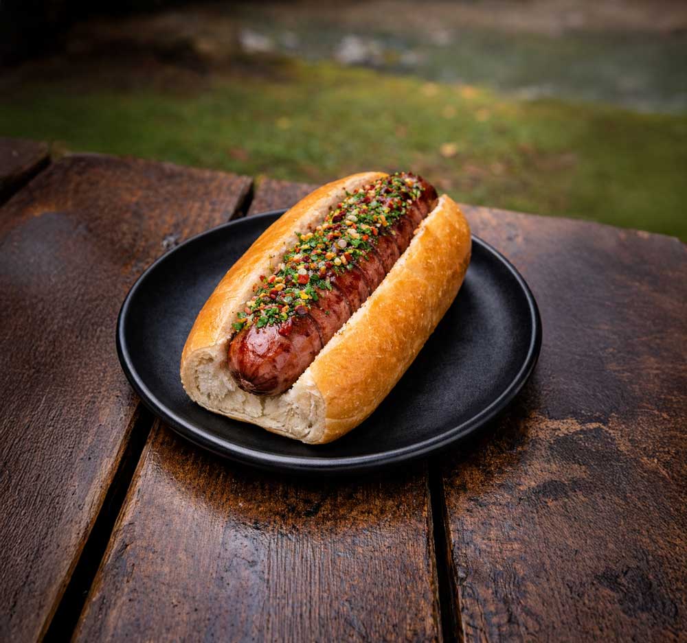 Argentine-style sausage grilled over open fire, juicy and well-seasoned, with a rich, smoky flavor that delivers a bold and satisfying bite straight from the grill.